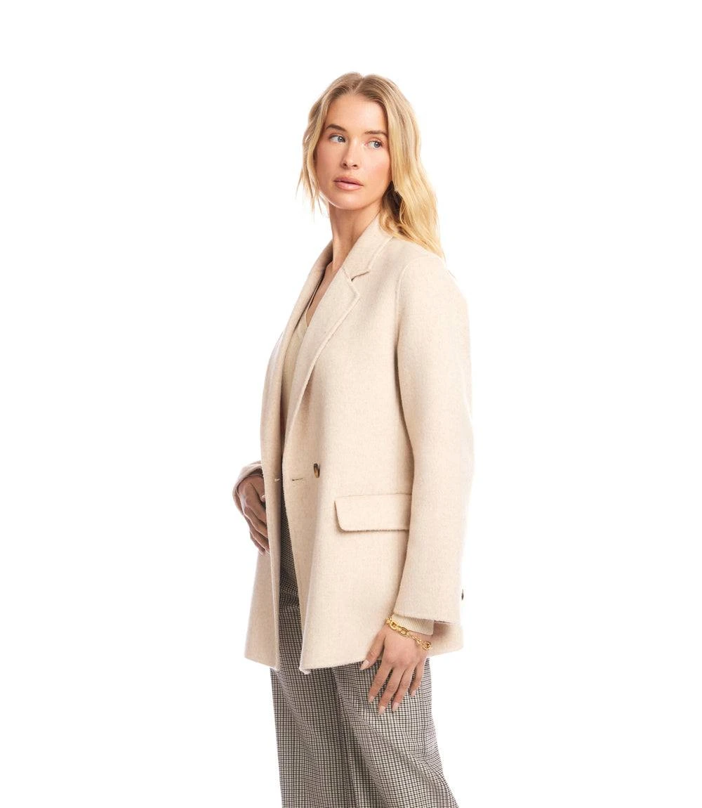 This brushed coating double-breasted coat features a notched collar, 2 x 1 tortoiseshell-effect button front closure, and two front pockets. Crafted with a wool-blend fabric, its tailored silhouette and refined details make it a timeless outerwear piece that combines warmth and sophistication.