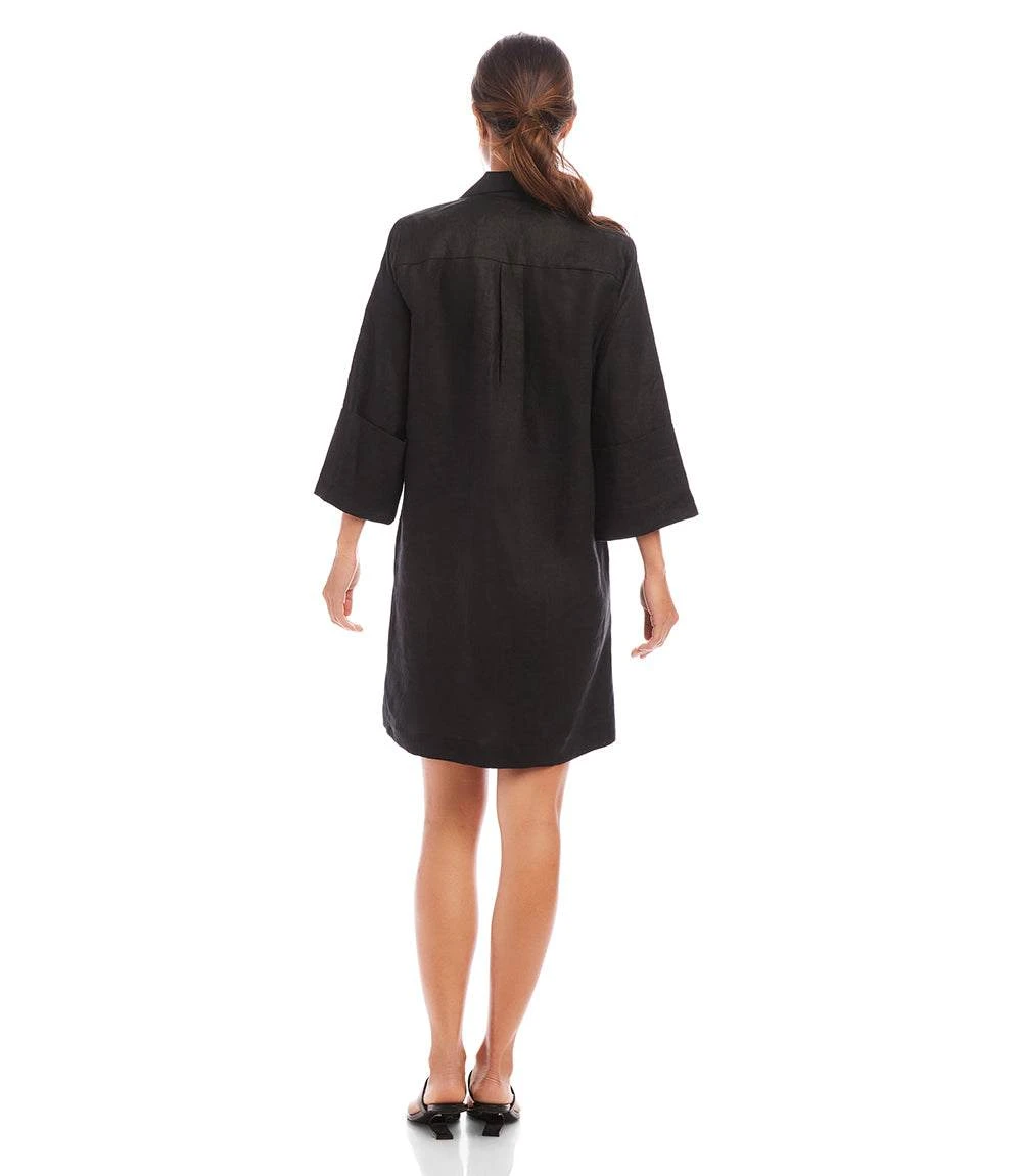 Elevate your wardrobe with our versatile linen dress. Featuring wide cuffed sleeves and a classic collared neckline, this dress seamlessly transitions from work to a night out. Pair it with your favorite sandals or heels and effortlessly make a statement. Perfect for any occasion.