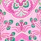 - Green, white, print on pink orchid background