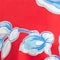 - Blue and white flower print on red background