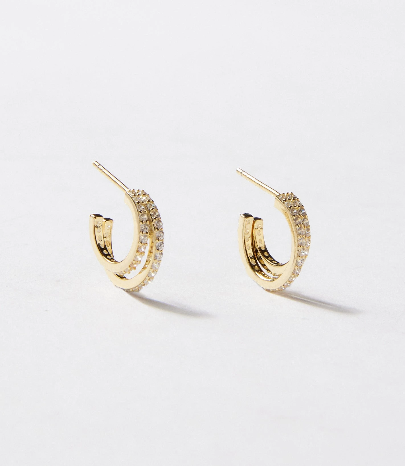 Sleek and sparkly, these double-band huggie earrings feature rows of brilliant cubic zirconia set in polished 14K gold vermeil. The twin design adds a layered look with just one piercing, offering a modern twist on a classic hoop.
