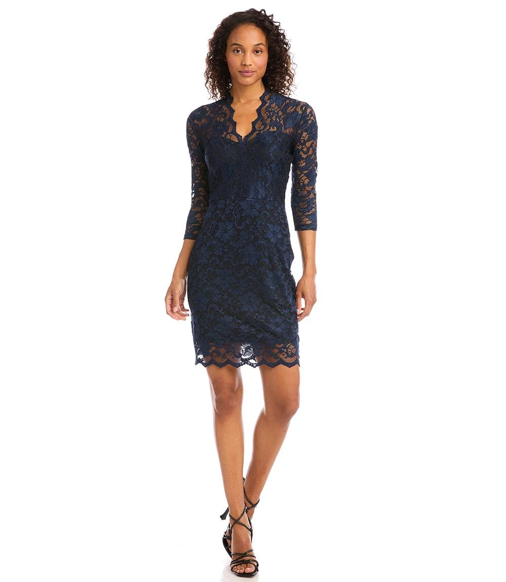 This V-Neck Scallop Hem Lace dress is the ultimate style for any occasion. Super-stretchy floral lace covers a lined sheath silhouette and creates a sheer illusion at the neckline, sleeves, and scalloped hemline. Pull this dress on, add some heels, and you’ll be ready for your next event – drinks, dinner, or wedding – without additional effort.